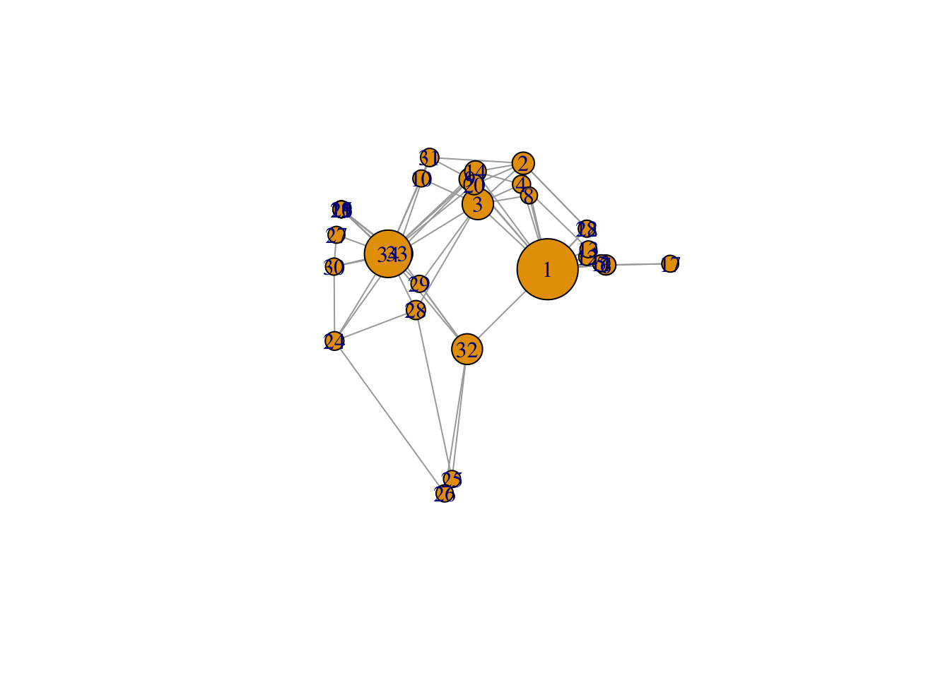 V(g)$size = igraph::betweenness(g, normalized = TRUE, directed = FALSE)* 60 + 10 #after some trial and error